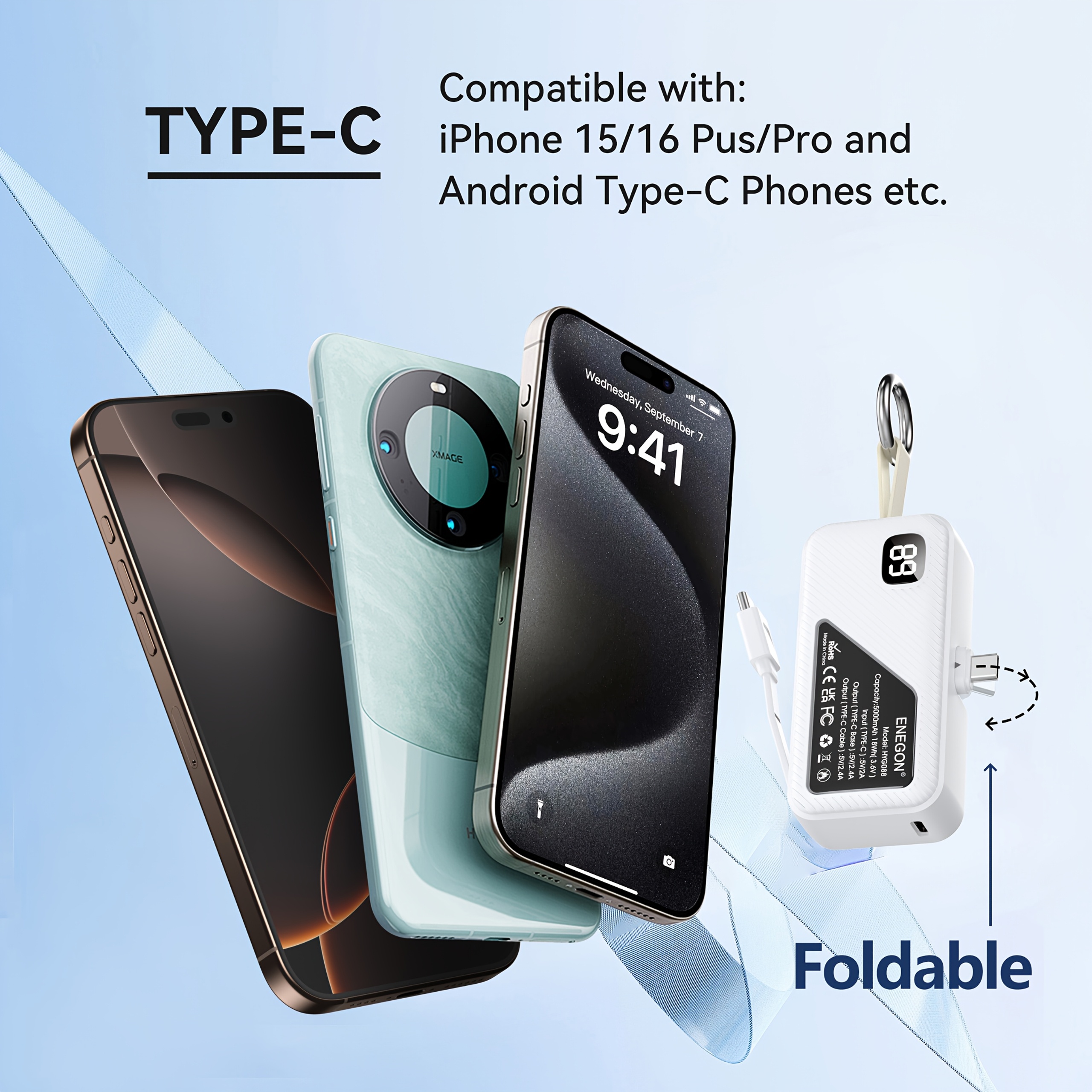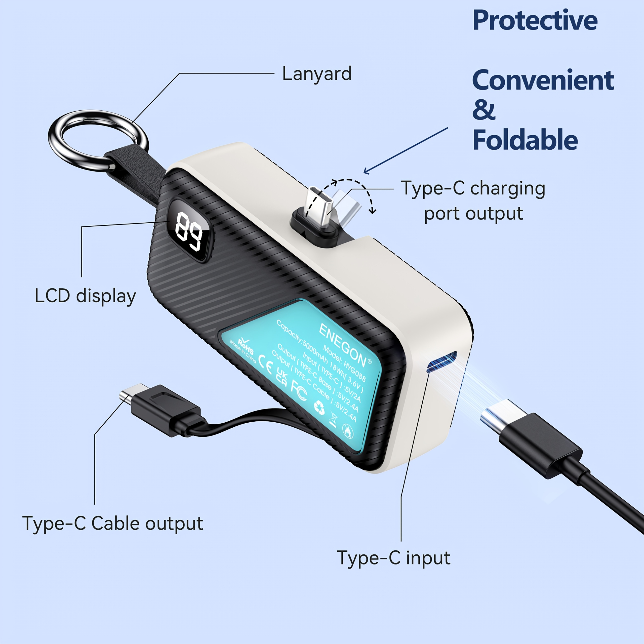 SPECIFICATIONS Battery Capacity (mAh): 5000 Battery Properties: Rechargeable Battery Brand: ENEGON Charger Features: Universal Connector Type: Usbtypec Item ID: EE7370142 Operating Voltage: ≤36V Origin: Guangdong,China Power Mode: USB Charging Rechargeable Battery: Lithium Battery-Polymer
